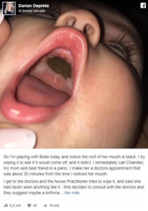 Esto fue lo que le pasó en Carolina del Norte a Darian Depreta con su bebé. Ella estaba jugando con su hija, cuando noto que este tenia una mancha en el paladar bastante grande y extraña.