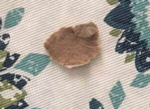 Cuando comenzaron a raspar sobre la mancha, la enfermera se dio cuenta que esta mancha en realidad era un pedazo de cartón. Se ve que se había llevado algo a la boca la pequeña y este pedazo de cartón se le quedó pegado en la zona del paladar.